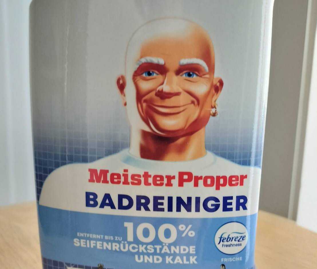 お風呂や洗面所のカルキを取り除く洗剤です。Meister Propper (マイスター・プロッパー ぴかぴか親方)の顔がおもしろいので買いました。