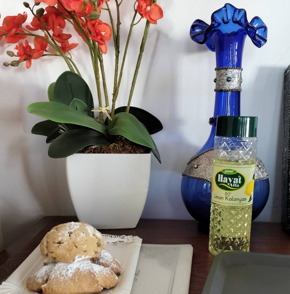 私たちを、トルコ紅茶と干しデーツとペットボトルの水でもてなしてくれ、たくさんの質問にほがらかに答えてくれました。