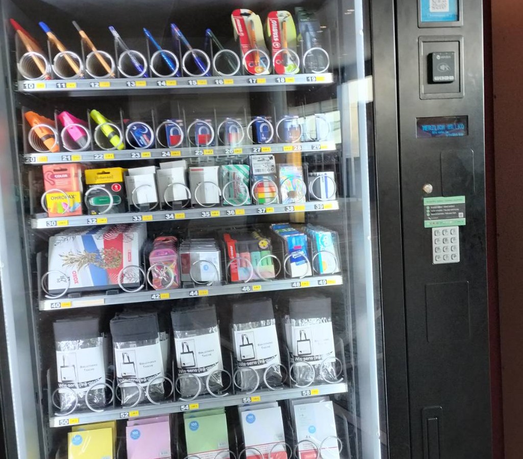 カバンは持ち込めないので、ロッカーに預けます。ロッカーには、南京錠が必要です。南京錠は、最初の1回だけは貸してももらえるのですが、自動販売機でも売っています。自動販売機にはほかにも、透明カバン(館内に私物を持ち込むために使っている人がいます)や筆記用具などが売られていました。