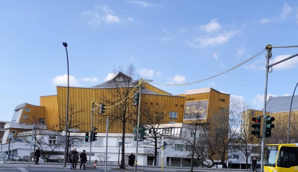 Kulturforum クルトゥアフォールム(文化フォーラム)という地区のなかにあり、向かいには同じ建築家の建てたベルリン・フィルハーモニーもあります。