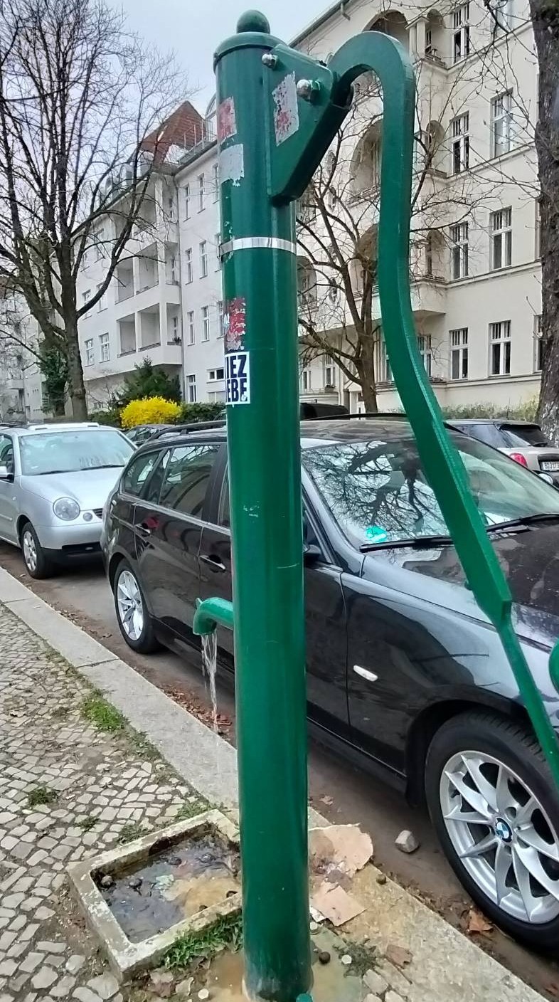 ちなみに、ベルリンは平坦な土地で、川や用水路がたくさんあって、地下水も豊富です。あちこちで、道路の端に井戸ポンプがあります。